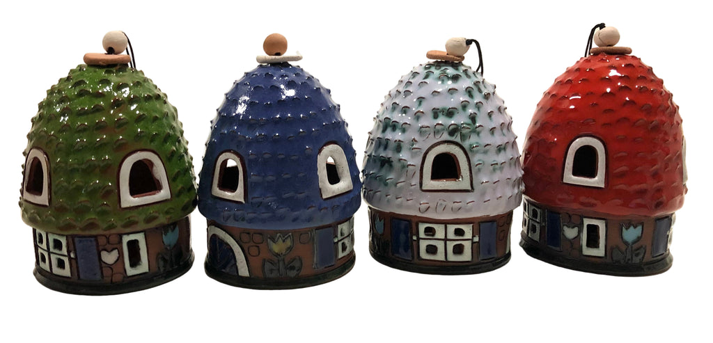 4 x Round Roof Fairy House Bells. Each measures 8.5 x 6cm; colours as per picture