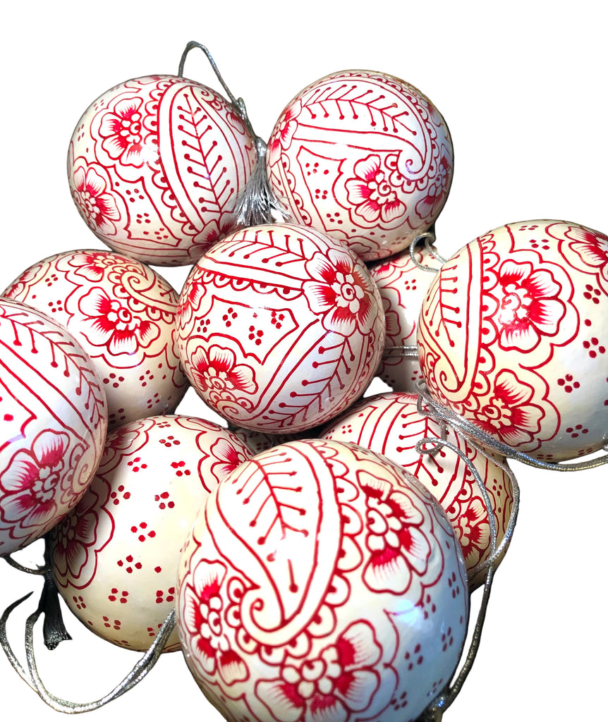 12 x red and white papier-mâché paisley bauble (one pack available)