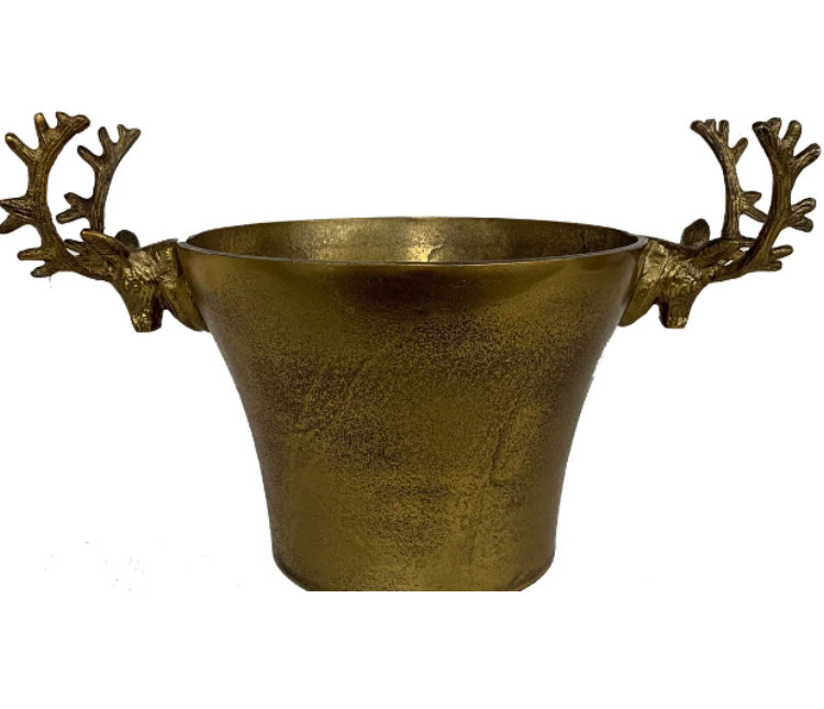 + Reindeer Bowl / Wine Cooler / Planter / Hamper - sturdy aluminium reindeer bowl with antique gold finish; measures 43 x 26 x 25cm