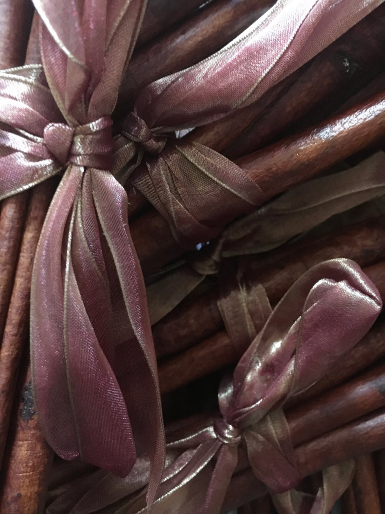 Malka’s signature scent – an uplifting blend of spices and florals splashed on to cinnamon quills tied with a ribbon. May help to repel moths and silverfish, and lift low spirits. For drawers, wardrobes, cars, rooms, Christmas trees and gifts and treasure boxes.